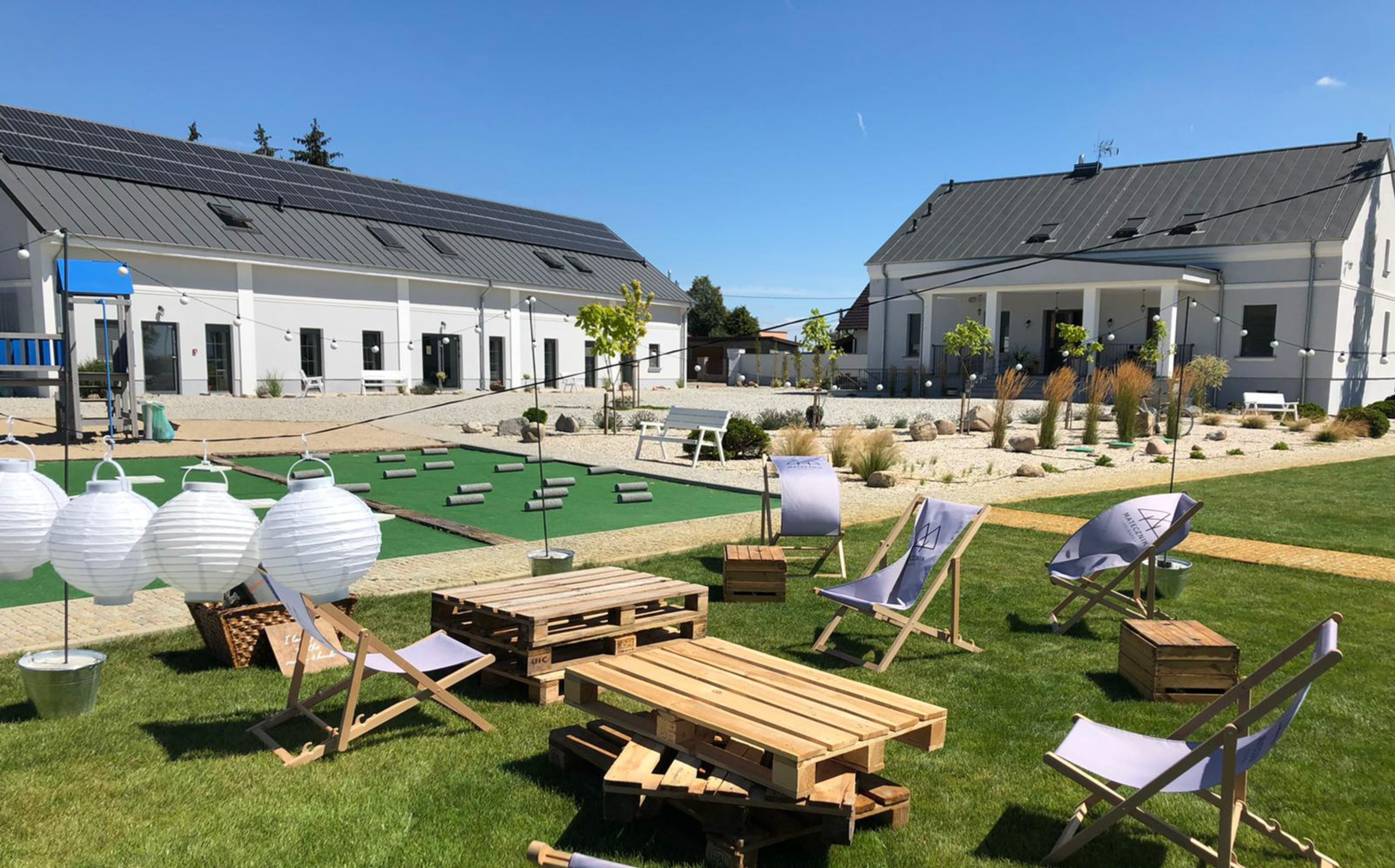 Do dyspozycji oddajemy 1,5 ha trawiastego terenu, na którym można aktywnie spędzić czas. Na terenie Folwarku Matecznik znajdują się:
