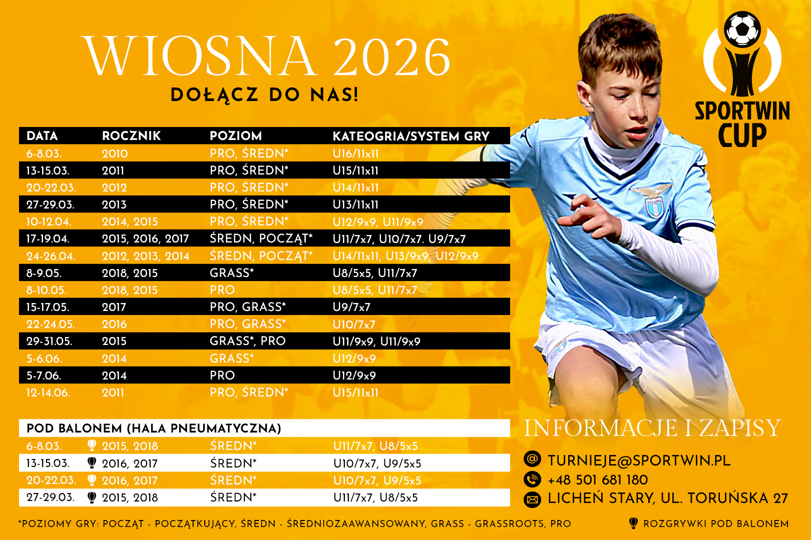 Dołącz do rywalizacji w naszych autorskich rozgrywkach. SportWin Cup to turnieje przygotowane z myślą o łączeniu międzynarodowej społeczności piłkarskiej w jednym miejscu - w Piłkarskim Sercu Polski